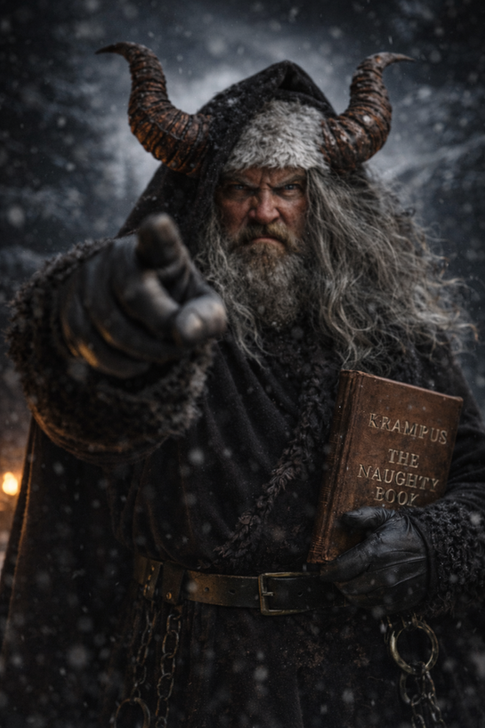 But as the years passed, Krampus began to notice what Santa would not. Some children learned nothing from kindness alone. Gifts were taken without gratitude, rules broken without remorse, and mercy was mistaken for weakness. Where Santa saw second chances, Krampus saw patterns. Quietly at first, he began to keep records—names, deeds, and intentions. Thus, the Naughty and Nice Lists were born.